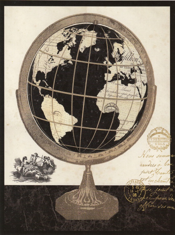 Obrázek 17x22, globus tmavý II., rám sv. dub - červotoč