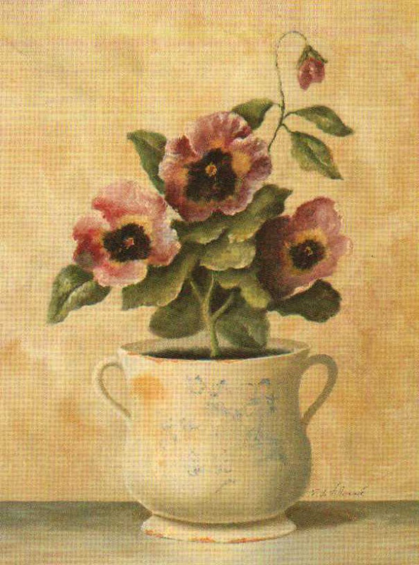 Obrázek 17x22, maceška - fialová, rám sv. dub - červotoč