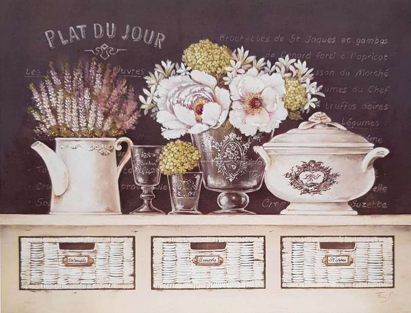 Obrázek 17x22, zátiší nádobí I., rám sv. dub - červotoč