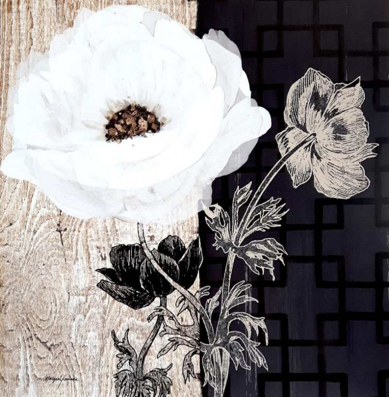 Obrázek 18x18, bílý květ II., rám bílý s patinou