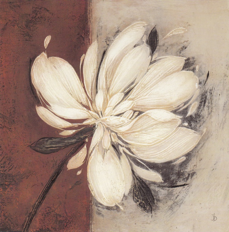 Obrázek 18x18, krémová květina II., rám bílý s patinou