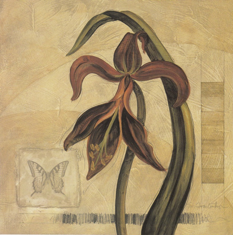 Obrázek 18x18, lilie III., rám sv. dub - červotoč