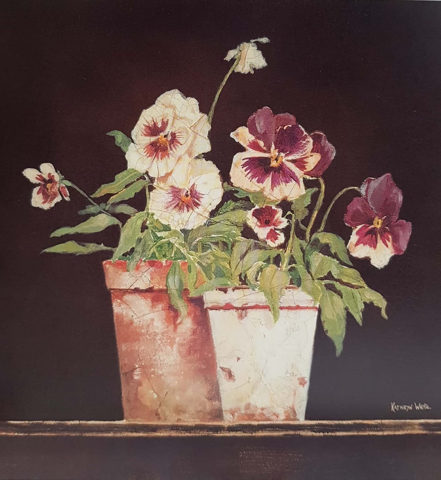 Obrázek 50x50, vázy II., rám bílý s patinou