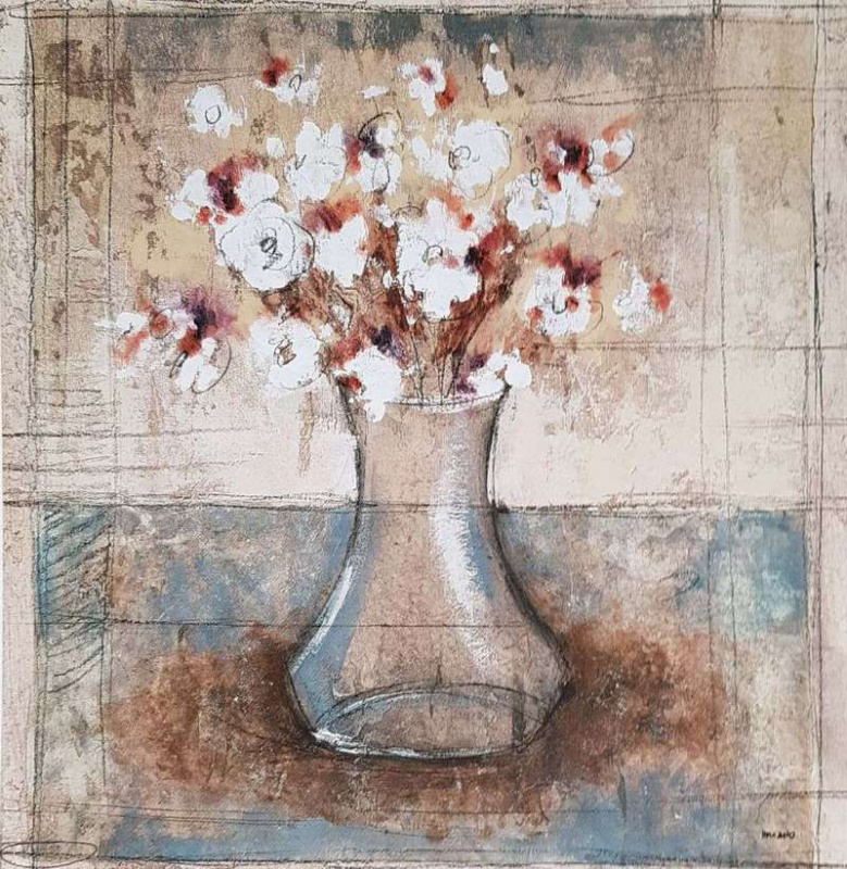Obrázek 18x18, moderní aranžmá II., rám bílý s patinou