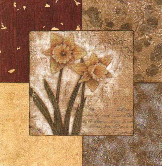 Obrázek 30x30, květiny/ text IV., rám bílý s patinou