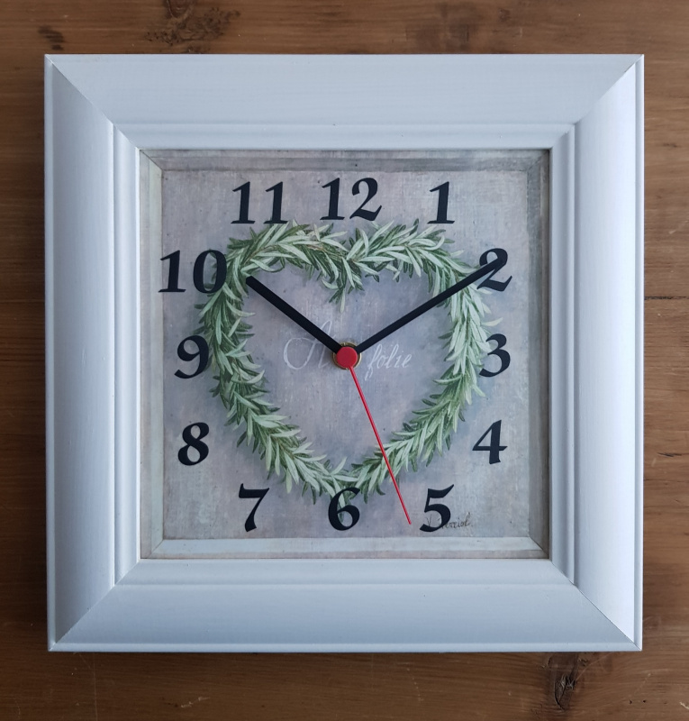 Hodiny 20x20, bylinky koření, rám bílý s patinou