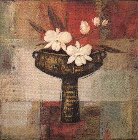 Obrázek 18x18, pohár & květiny I., rám sv. dub - červotoč