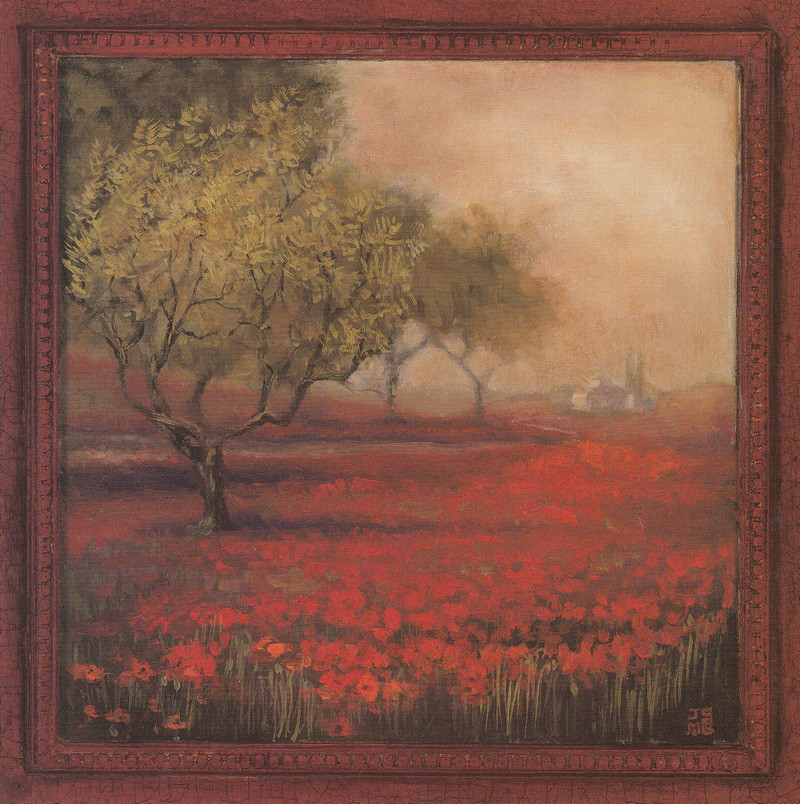 Obrázek 18x18, pole máku I., rám bílý s patinou