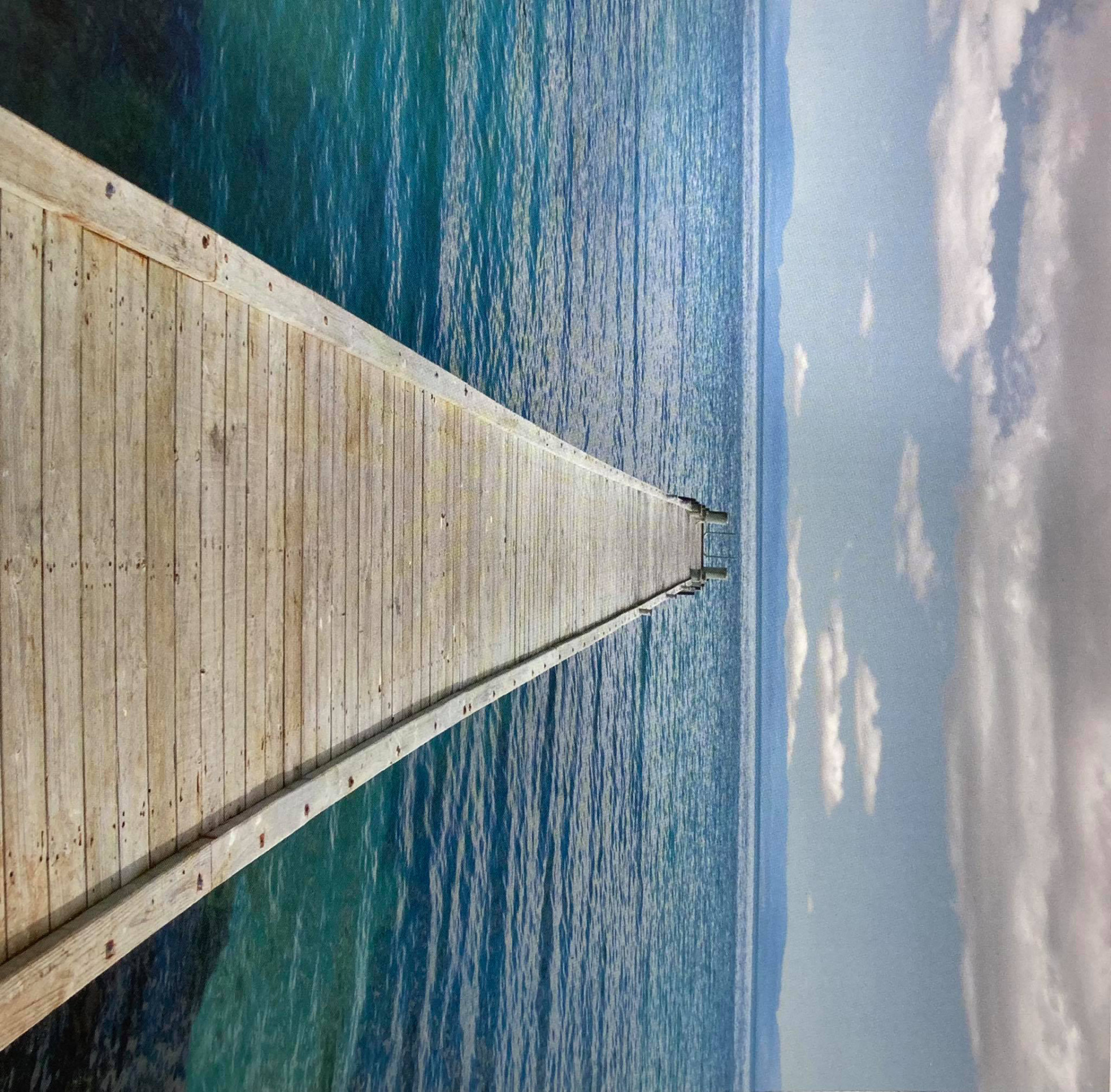 Obrázek 18x18, tropický surfování, rám bílý s patinou