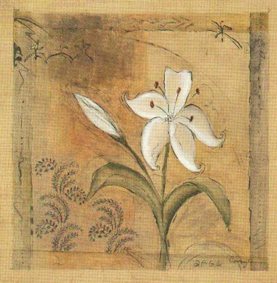 Obrázek 17x22, pivoňka bílá, rám bílý s patinou