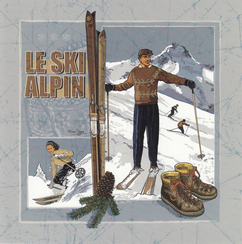 Obrázek 20x20, alpské lyžování, rám bílý s patinou