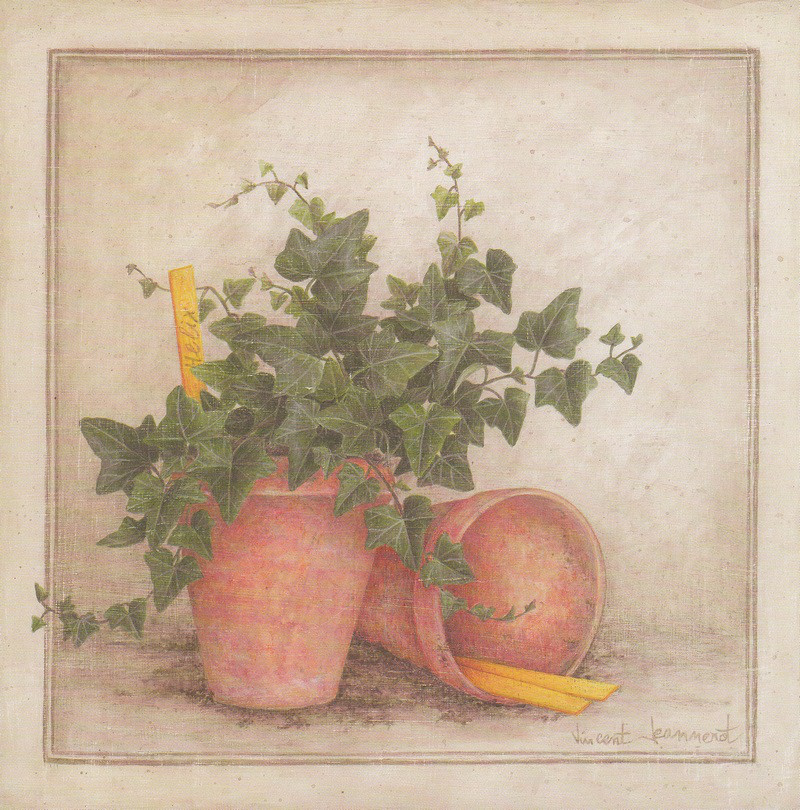 Obrázek 20x20, břečťan I., rám bílý s patinou