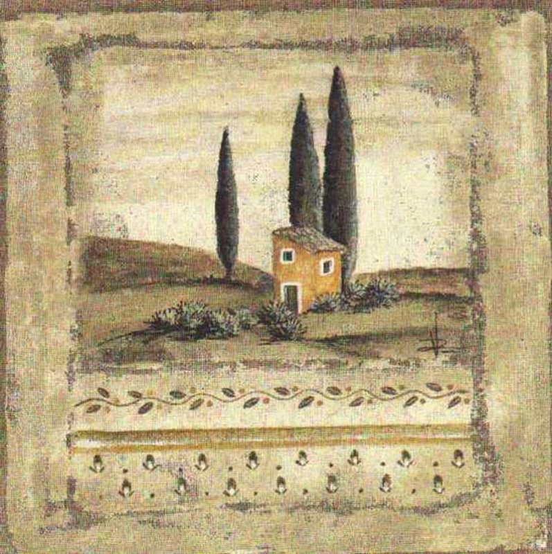Obrázek 20x20, chatrč žlutá, rám bílý s patinou
