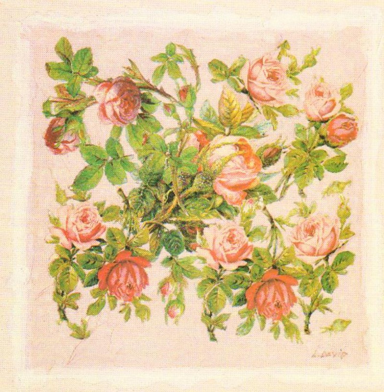 Obrázek 20x20, houština růží II., rám sv. dub - červotoč