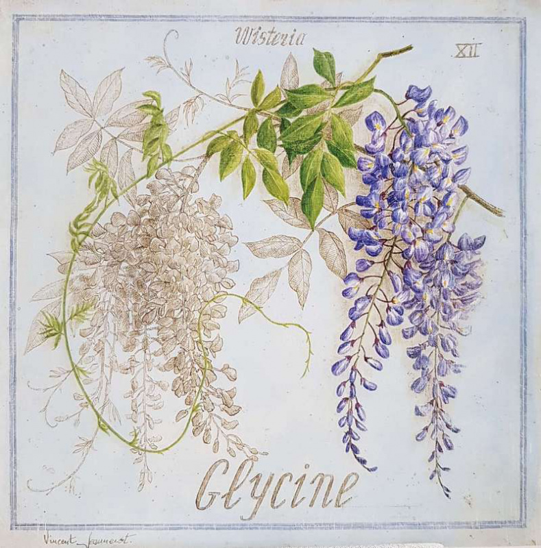 Obrázek 17x22, listy II., rám bílý s patinou