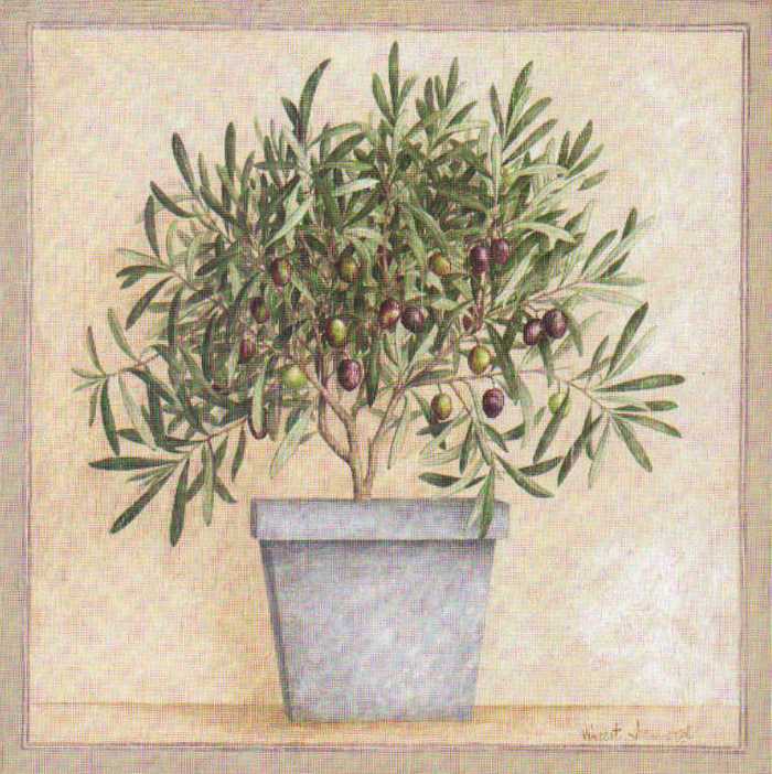 Obrázek 20x20, olivovník v květináči, rám sv. dub - červotoč