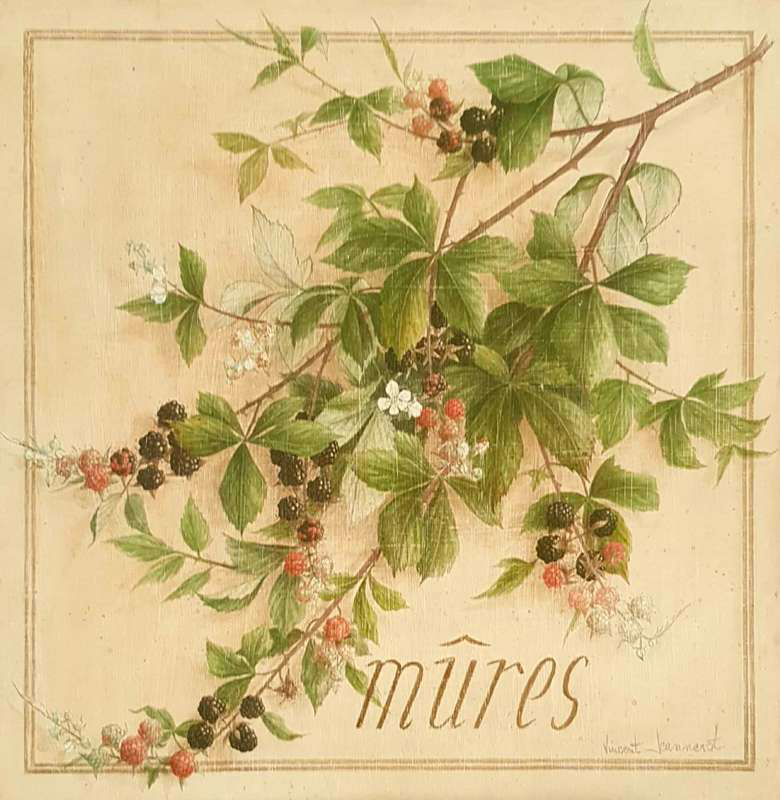 Obrázek 20x20, ostružiny I., rám bílý s patinou