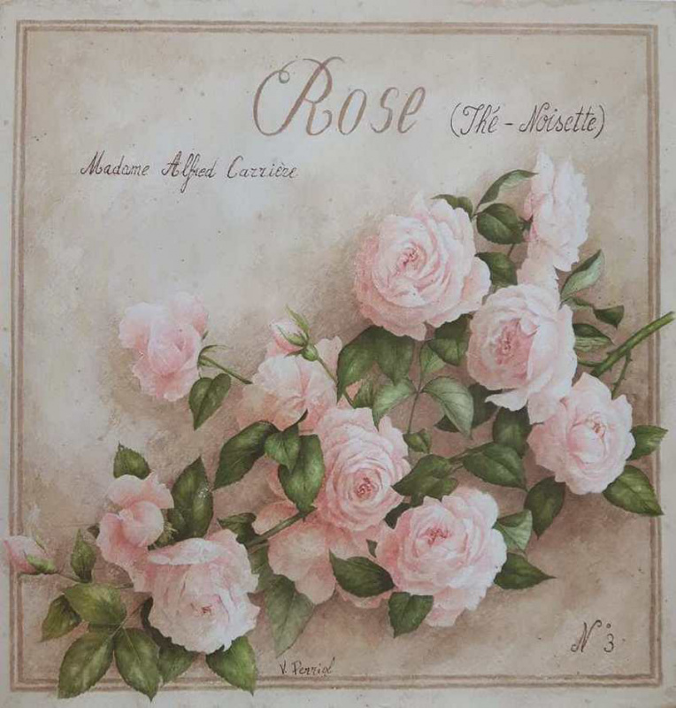 Obrázek 20x20, růže pnoucí, rám bílý s patinou