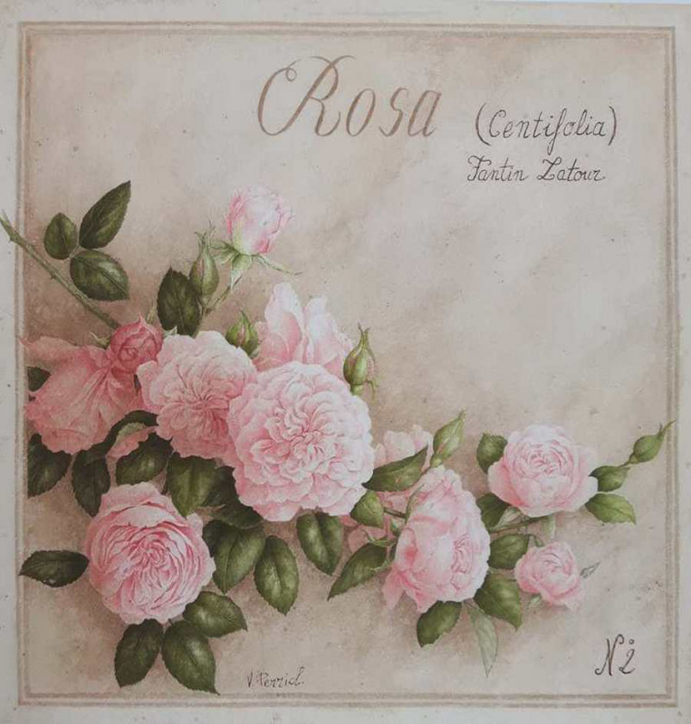 Obrázek 20x20, růže stolistá, rám bílý s patinou