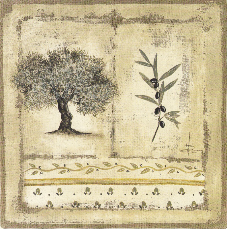 Obrázek 20x20, větvička olivy/ olivovník I., rám bílý s patinou