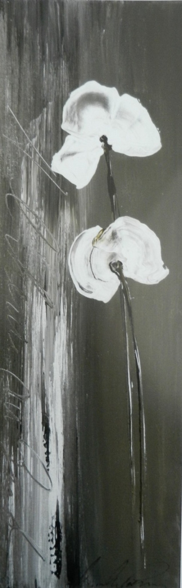 Obrázek 24x30, zátiší s květinami, rám bílý s patinou