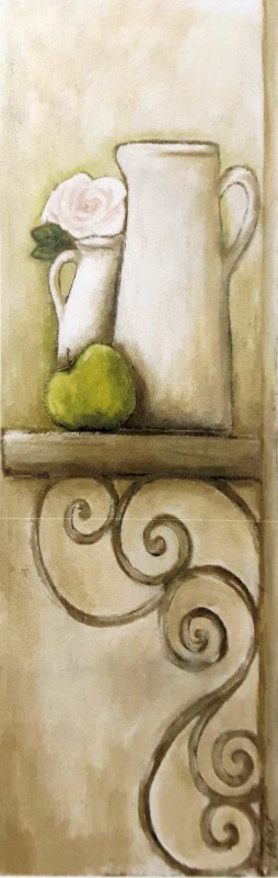 Obrázek 20x60, džbán s růží, rám bílý s patinou