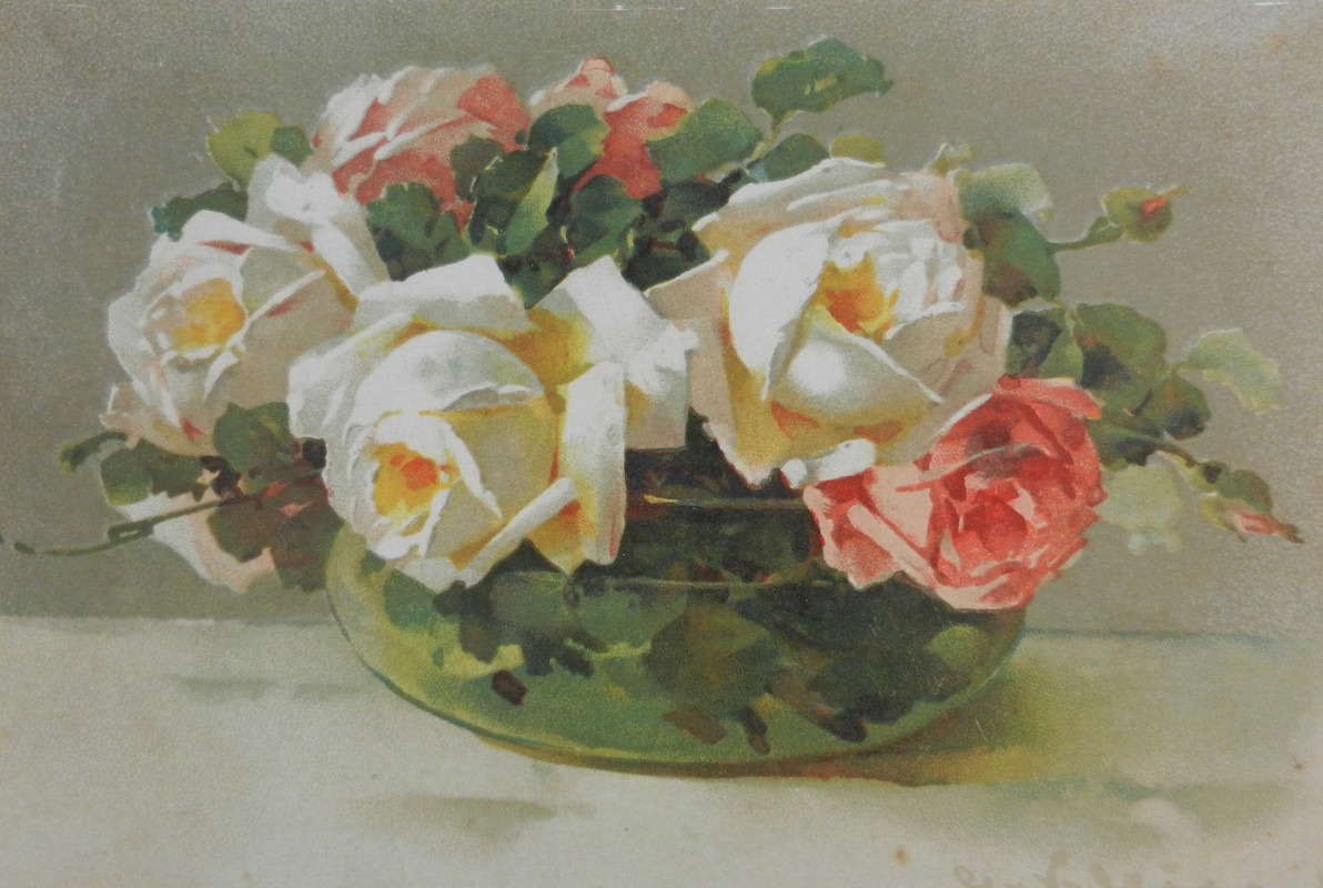 Obrázek 21x31, růže ve váze I., rám sv. dub - červotoč
