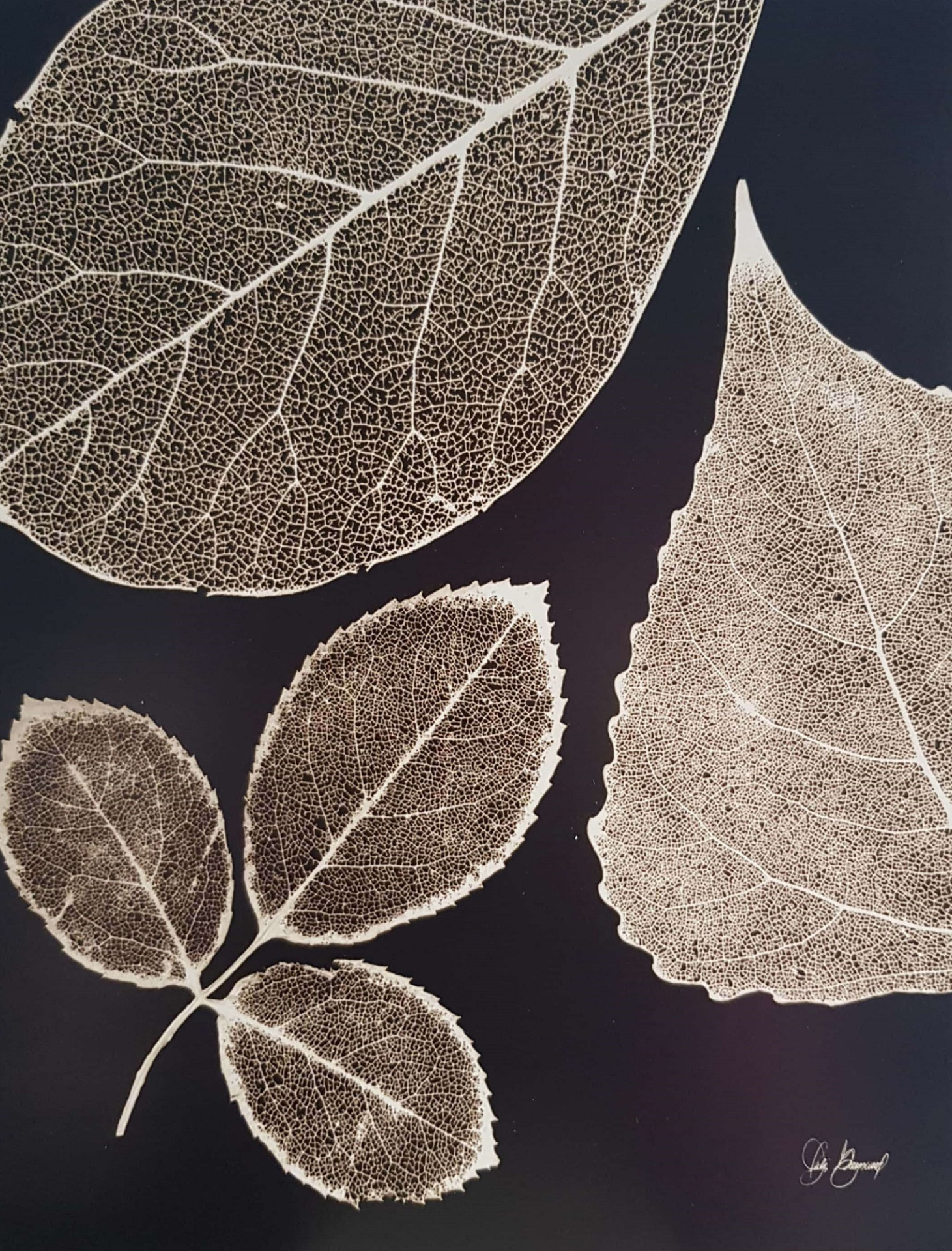 Obrázek 24x30, listy I., rám bílý s patinou