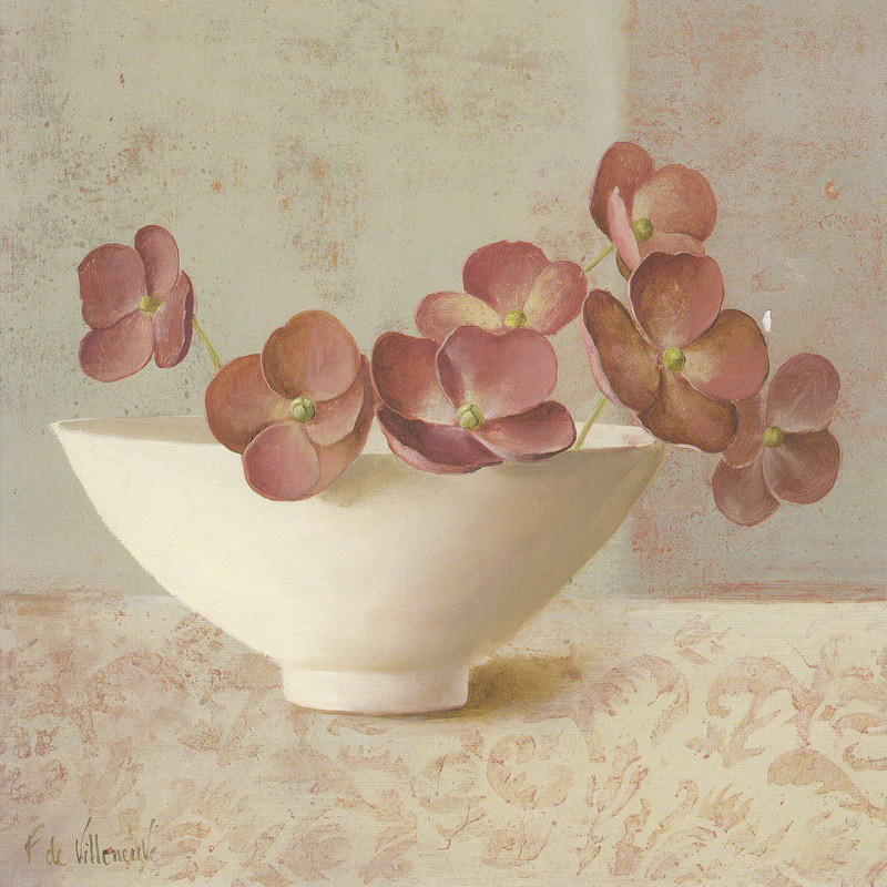 Obrázek 30x30, květiny ve váze & ornament, rám sv. dub - červotoč