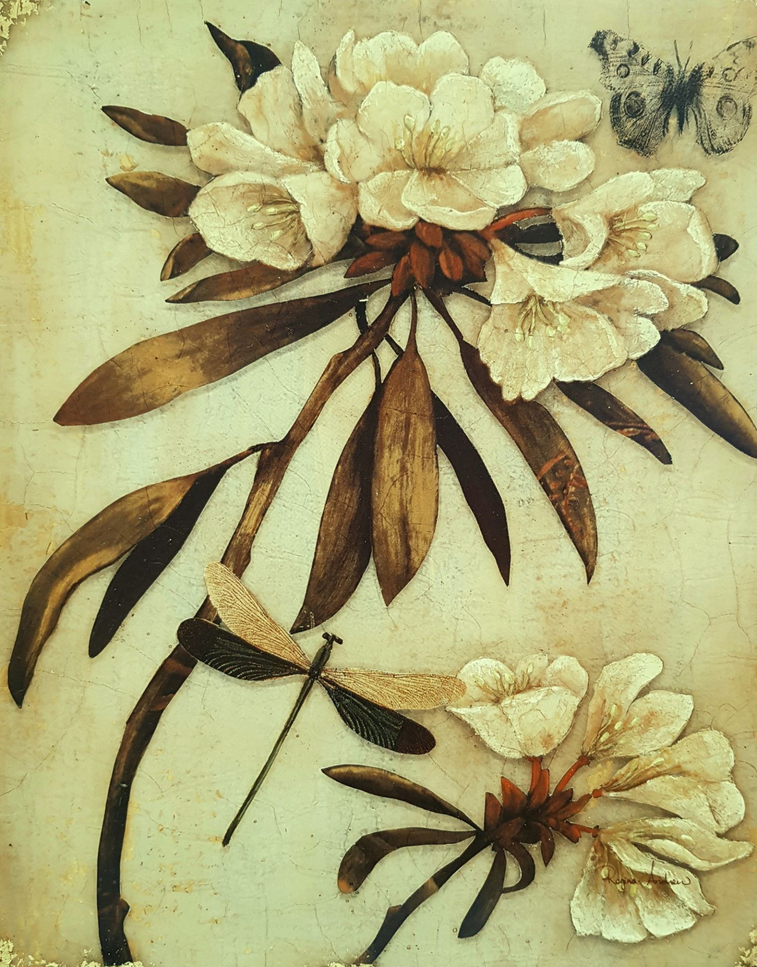 Obrázek 24x30, rododendron, rám sv. dub - červotoč