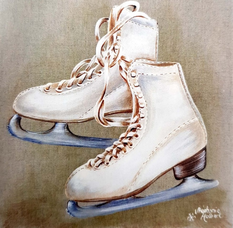 Obrázek 30x30, brusle bílé, rám sv. dub - červotoč