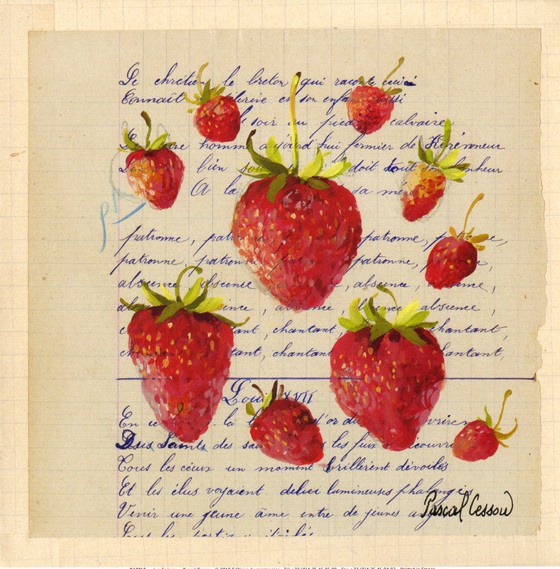 Obrázek 30x30, jahody, rám bílý s patinou