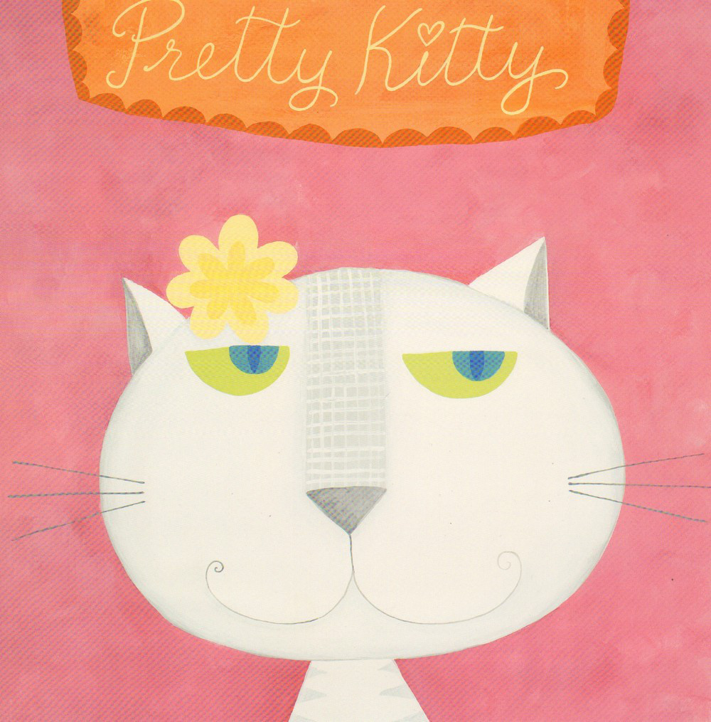 Obrázek 30x30, kočička, rám bílý s patinou