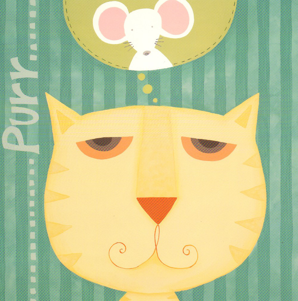 Obrázek 30x30, kocour & myš, rám bílý s patinou
