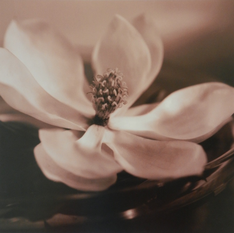 Obrázek 30x30, květ magnólie, rám bílý s patinou
