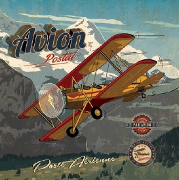 Obrázek 30x30, letadlo Postal, rám sv. dub - červotoč