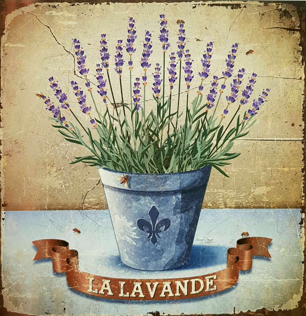 Obrázek 30x30, levandule v květináči, rám sv. dub - červotoč