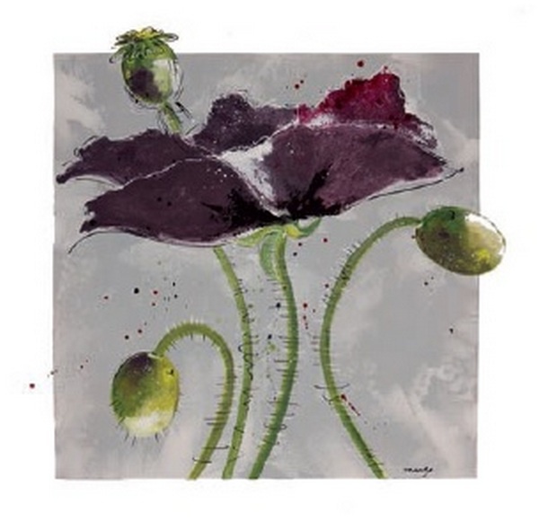 Obrázek 30x30, mák - tmavý, rám sv. dub - červotoč