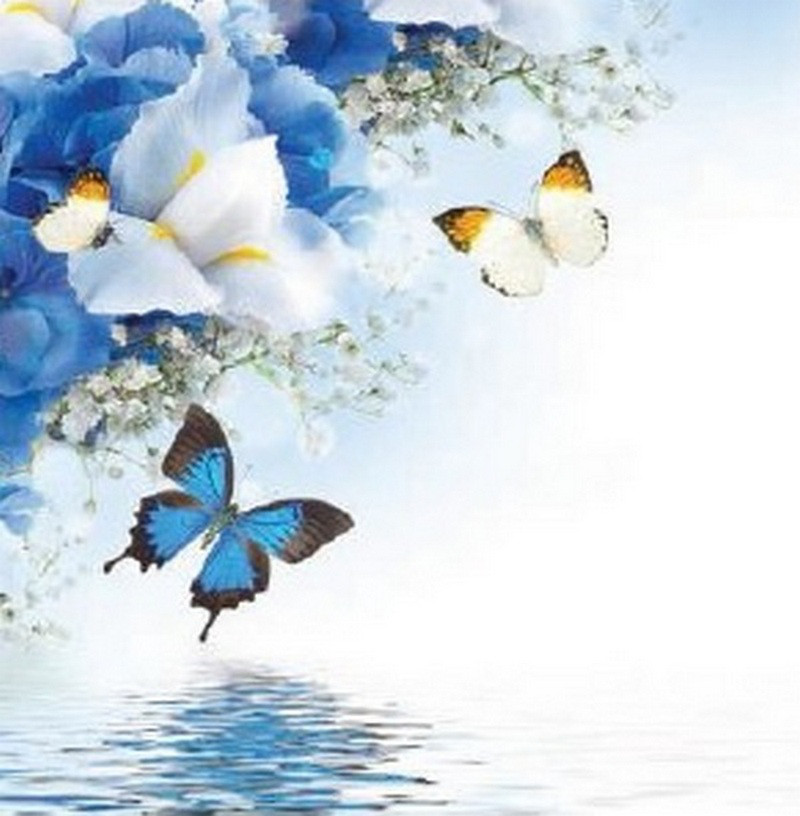 Obrázek 30x30, motýl modrý, rám bílý s patinou
