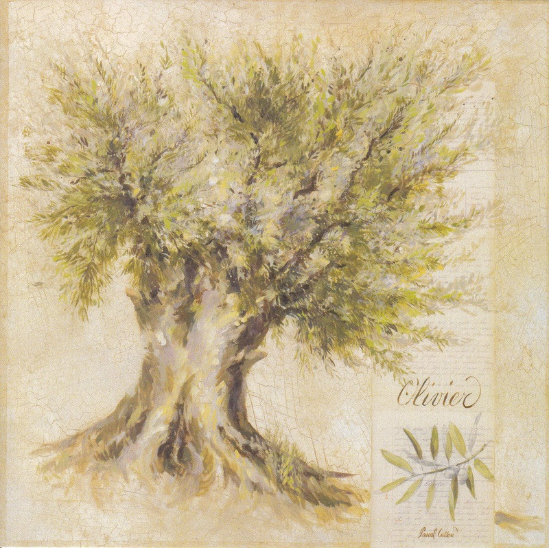 Obrázek 30x30, olivy I., rám bílý s patinou
