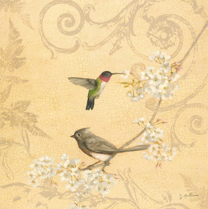 Obrázek 30x30, ptáčci I., rám sv. dub - červotoč