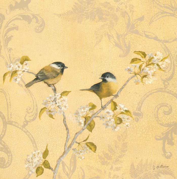 Obrázek 30x30, ptáčci II., rám sv. dub - červotoč