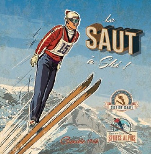 Obrázek 30x30, skokan na lyžích II., rám sv. dub - červotoč