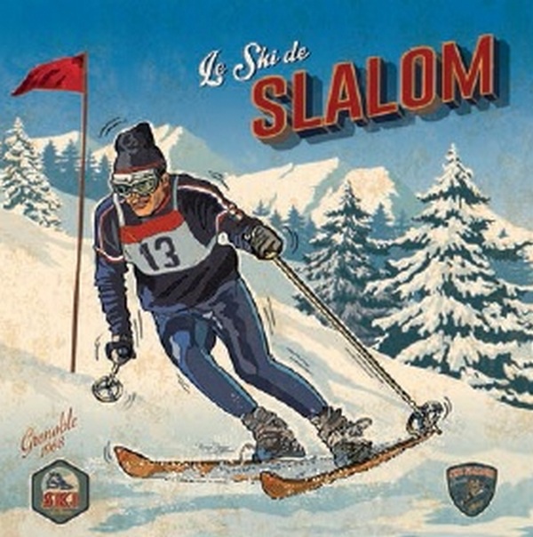 Obrázek 30x30, slalom na lyžích, rám sv. dub - červotoč