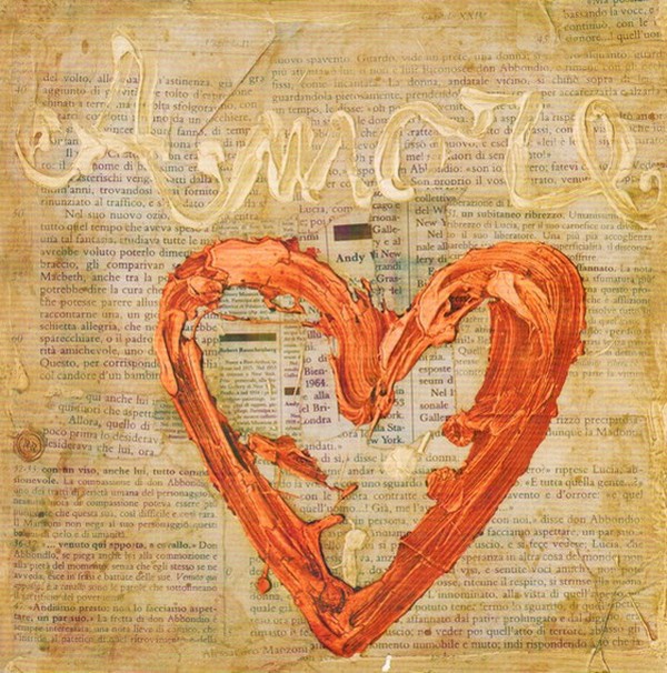 Obrázek 30x30, srdce amore, rám bílý s patinou