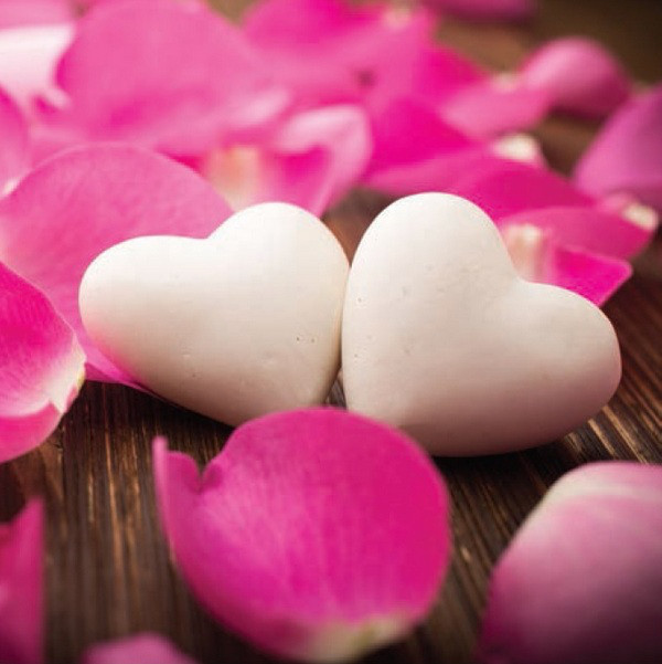 Obrázek 30x30, srdce s lístky, růžové, rám bílý s patinou