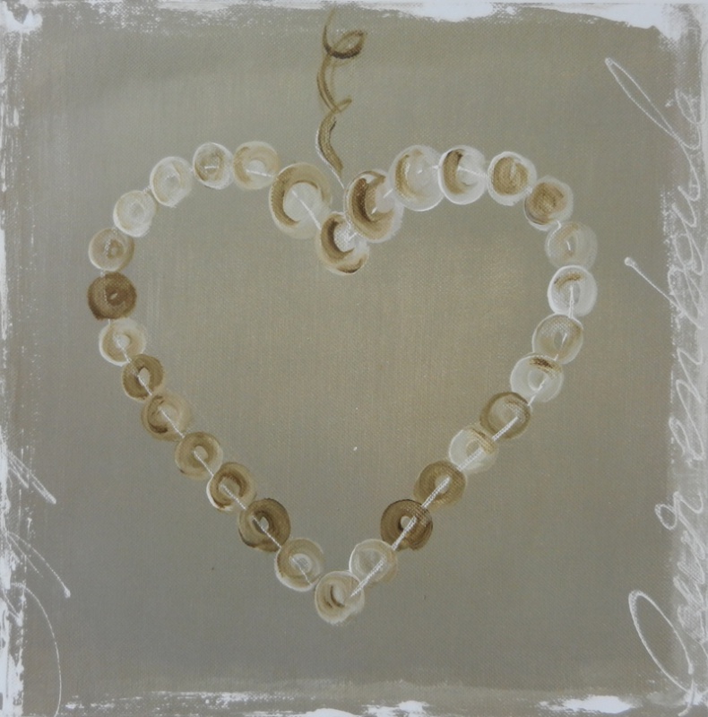 Obrázek 30x30, srdce z korálků, rám bílý s patinou