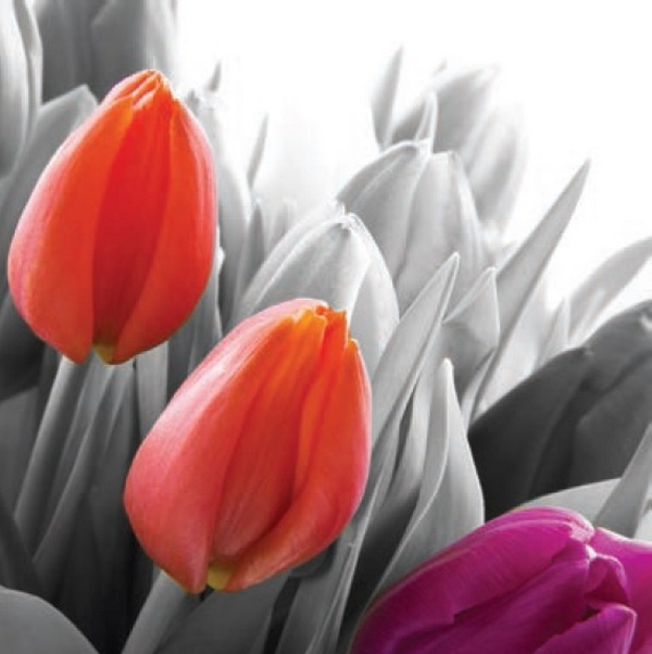 Obrázek 30x30, tulipány oranžové, rám bílý s patinou