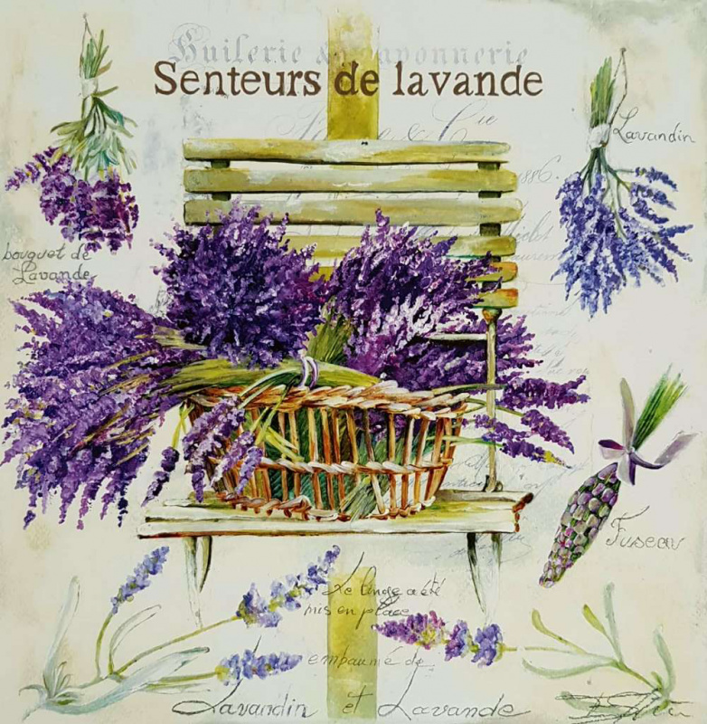 Obrázek 30x30, vůně levandule, rám bílý s patinou