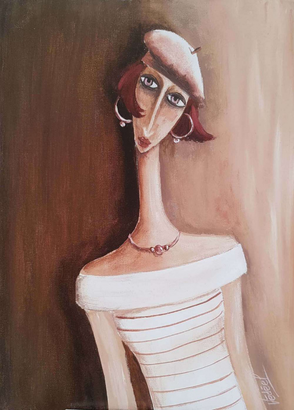 Obrázek 30x40, brunetka, rám sv. dub - červotoč